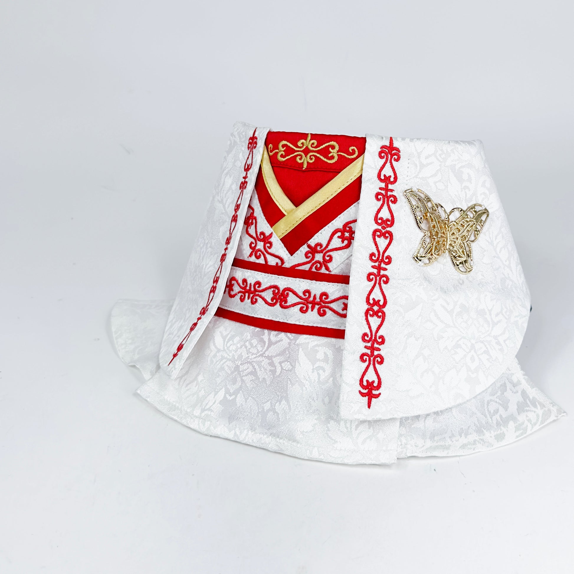 After your pet has worn the bib collar, gently wipe with a clean wet towel. For tough stains removal, engage professional dry-cleaning laundry service to help. Do not soak bib collars in water to avoid colour fading. Follow care label above to have a long lasting bib collar that your pet can wear again and again.